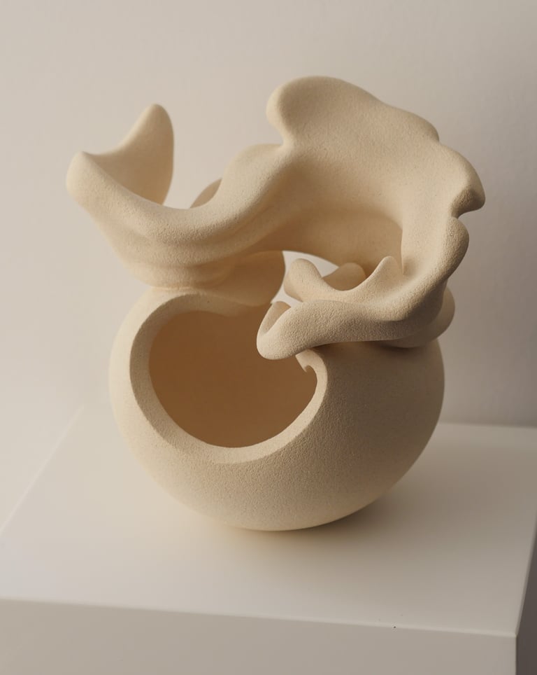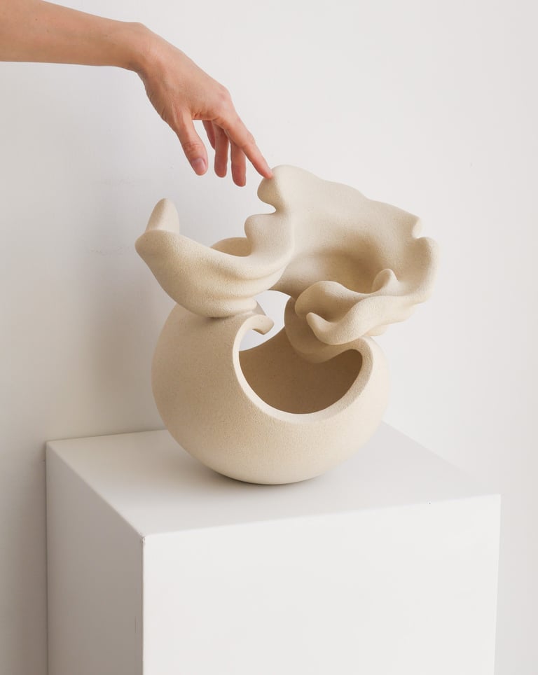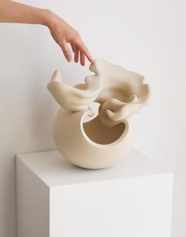 "I hold your storm I" is a one-of-a-kind sculptural vase made of stoneware clay, using traditional hand-building techniques.