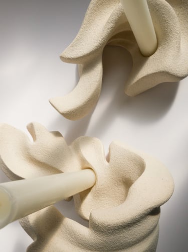 Stoneware clay. Light glaze wash applied with an airbrush.
