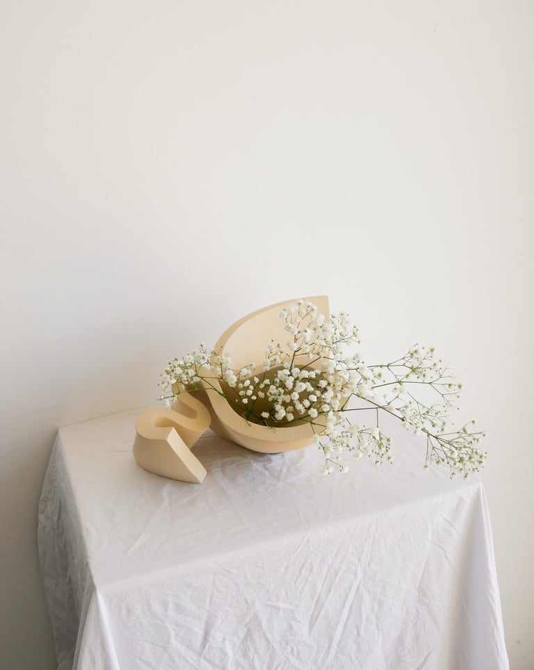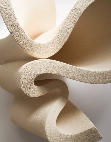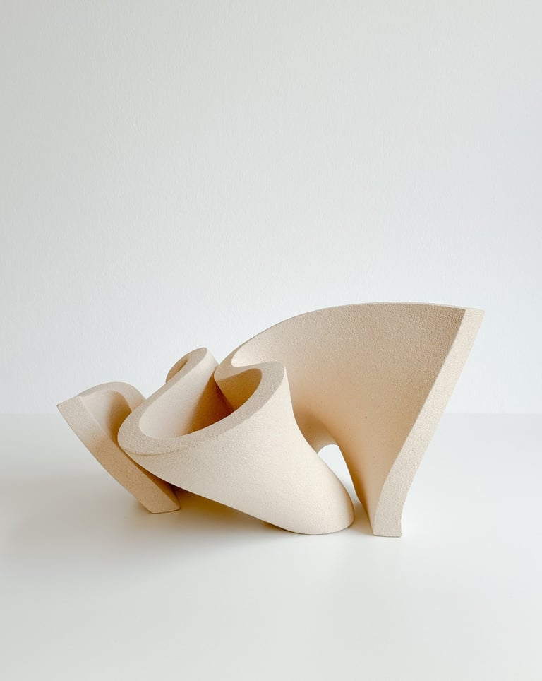 "Ribbon II" is a one-of-a-kind sculptural vase made of natural stoneware clay, using traditional hand building techniques.