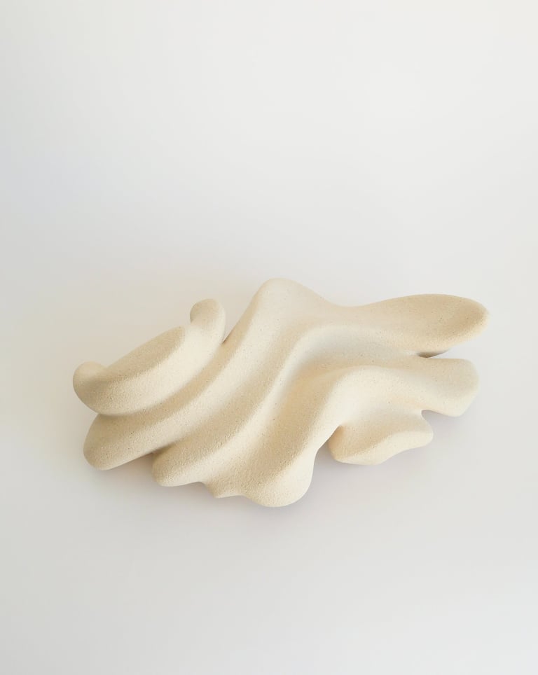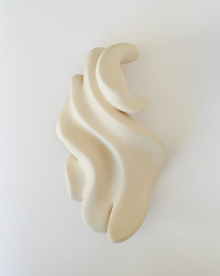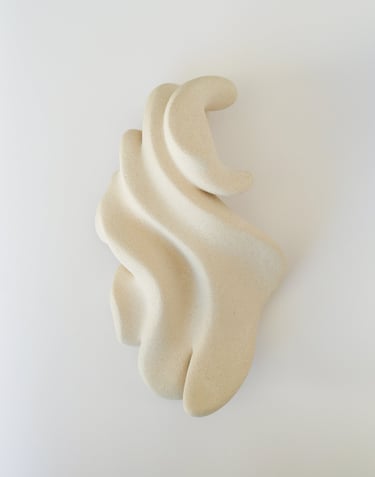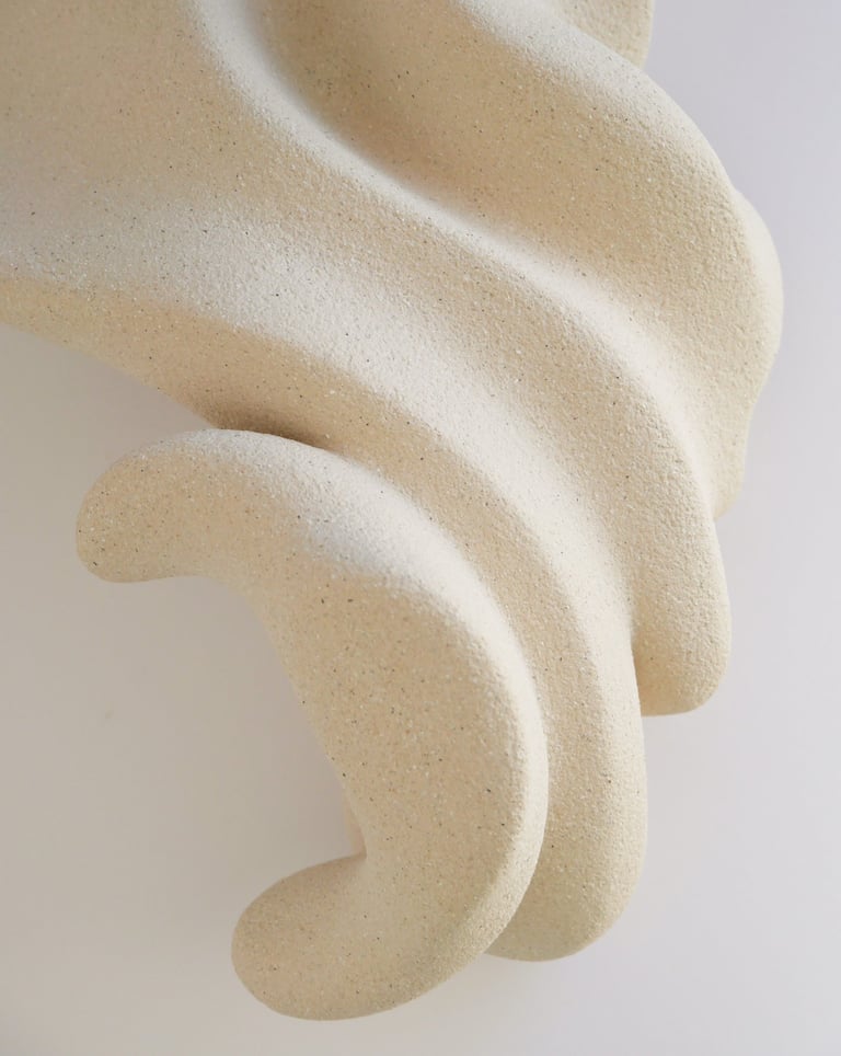 "Seeking Rhythm" is a one-of-a-kind ceramic sculpture made of white stoneware clay using traditional hand-building techniques.