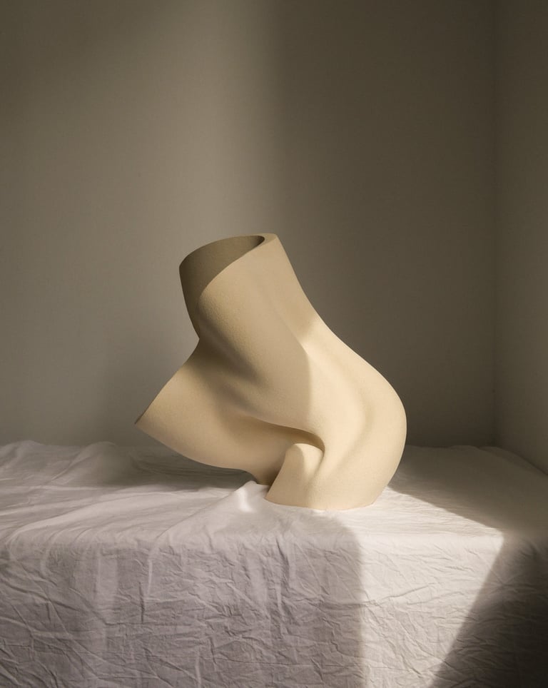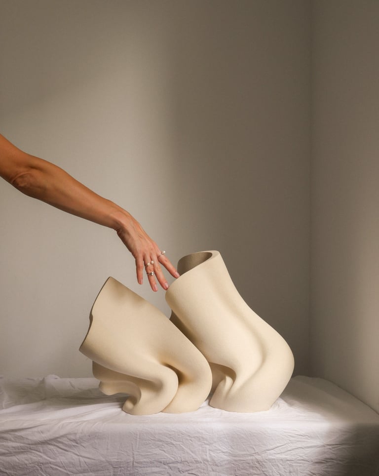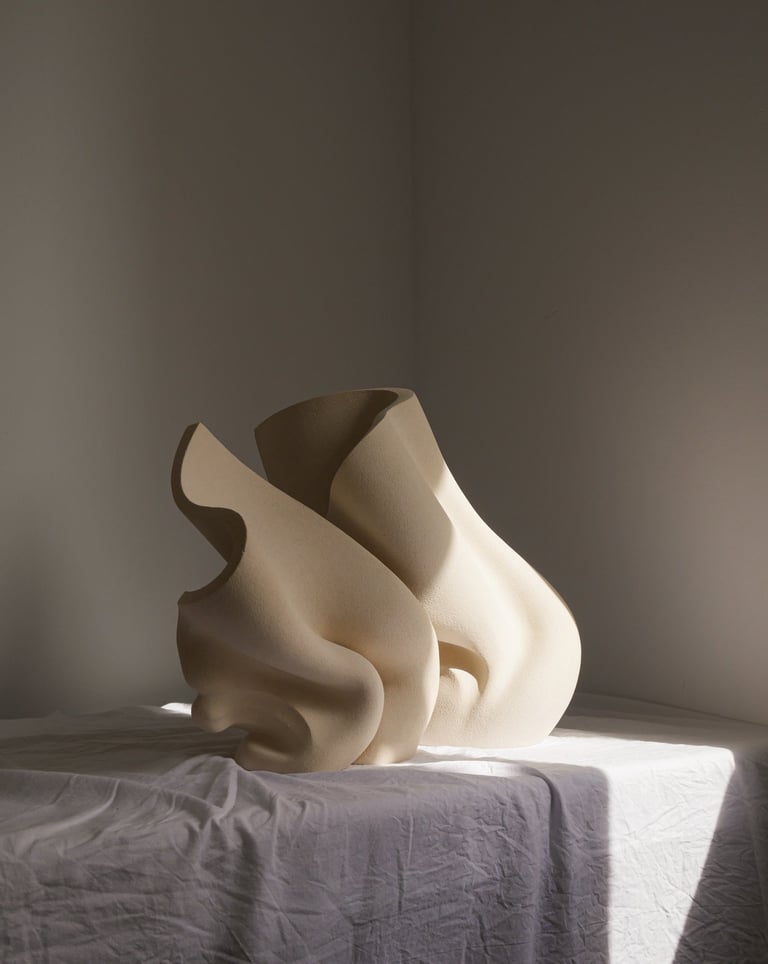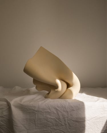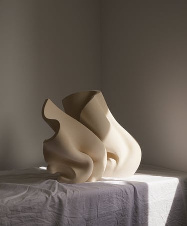 "The wind of change" is a one-of-a-kind ceramic sculptural composition consisting of two separate sculptures. She was made from natural stoneware clay, using traditional hand building techniques.